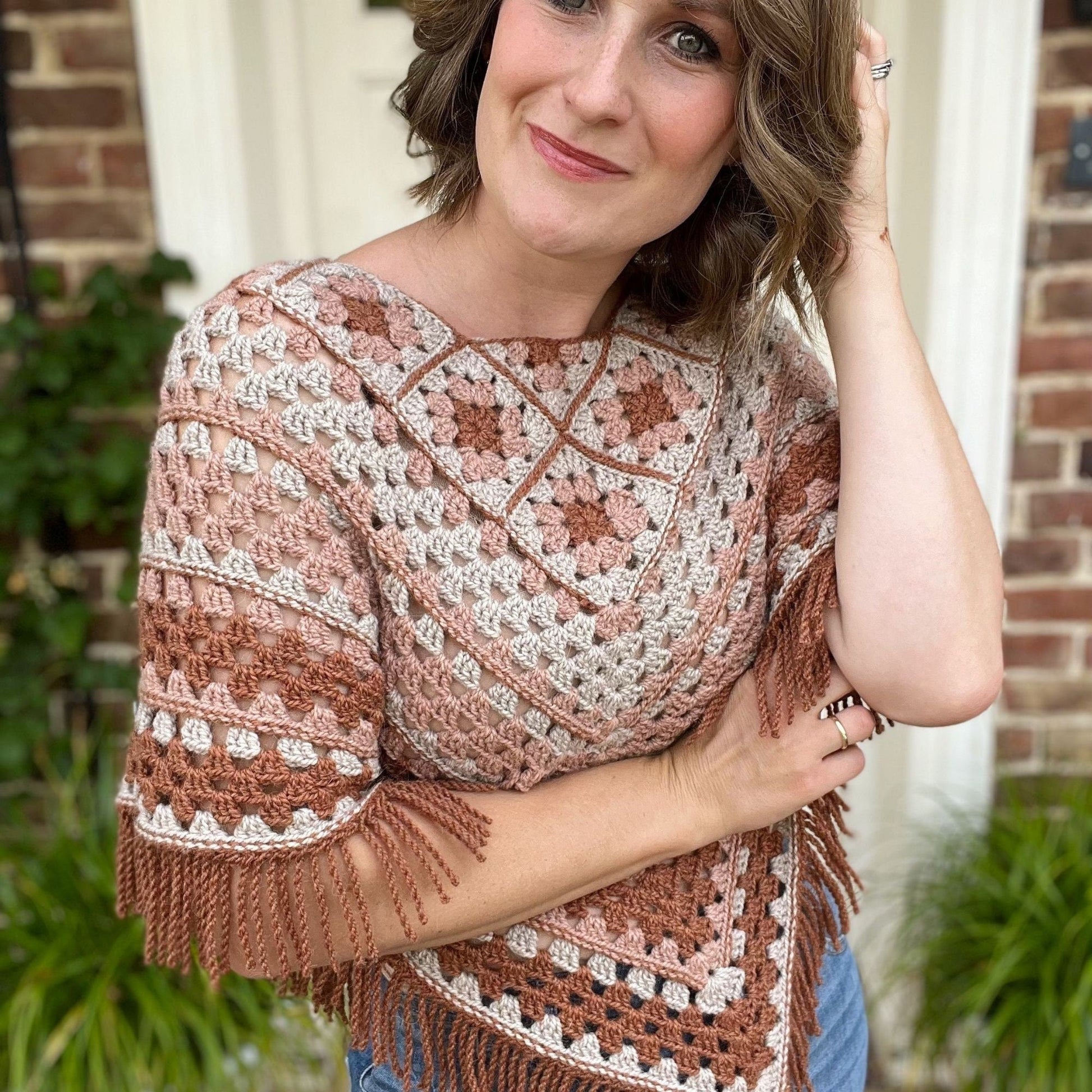 Granny Square Poncho Crochet Pattern | Beginner-Friendly Sweater or Fringe Poncho | Sizes XS–5XL | PDF Download