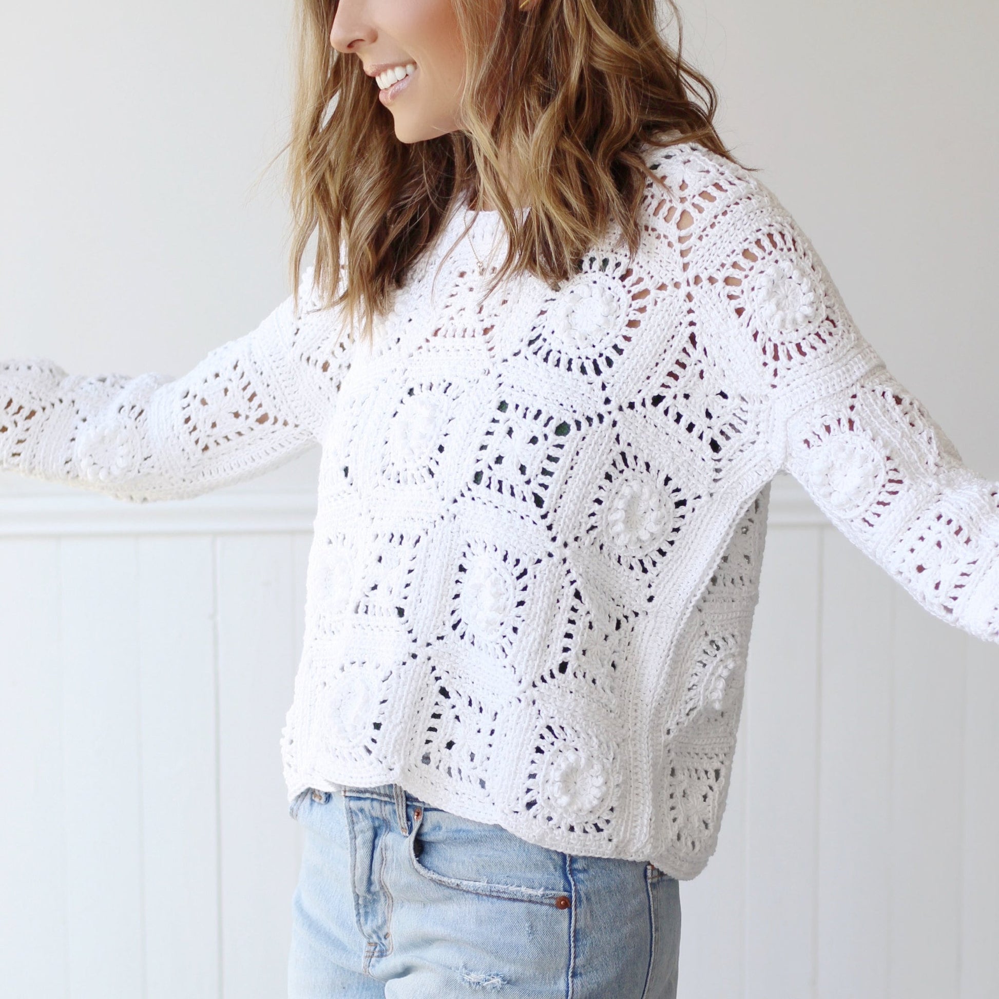 A fresh take on a timeless favorite—this Granny Square Sweater brings modern boho charm to your wardrobe, and it’s perfect for all four seasons! Whether made with cotton for a breathable summer look or wool for a cozy winter vibe, this versatile piece is sure to become your new go-to.